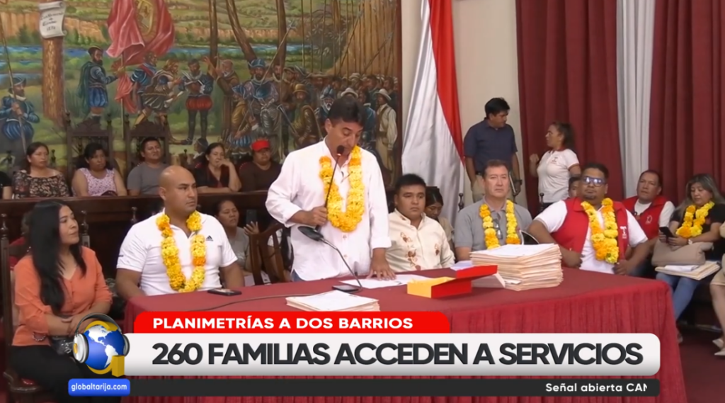 Un total de 260 familias de los barrios “Niño Salvador” y “Las Violetas”, en la ciudad de Tarija, fueron beneficiadas con la entrega de planimetrías. El hecho les permitirá acceder a servicios municipales como alumbrado público, apertura de calles y empedrado.