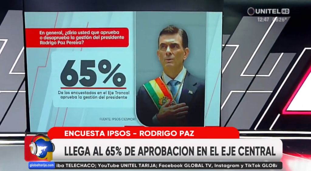 ENCUESTA DE UNITEL MUESTRA UN 65% DE APROBACIÓN A PRESIDENTE PAZ